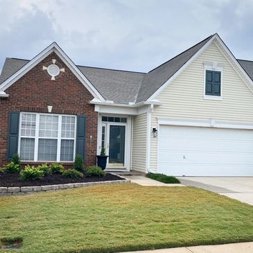 A very generous 2 bedroom floor plan with the master on the ground floor. The master bedroom features a vaulted ceiling and a large walk in closet. Two full baths with the master featuring a separate shower and double vanity. A formal dining room. Designer colors, hardwood, carpet and tile floors. Complete kitchen with granite counter tops and all stainless steel appliances with an adjacent breakfast area. The laundry room is equipped with a washer and dryer. A full size 2 car garage with remote opener and "Iron Man" floor finish. Additional features include a private patio, gas logs, wired for a security system. This location is close to BMW and Michelin HQ. No pets, and a smoke and vape free home, one year lease. All maintenance is the responsibility of the owner.
